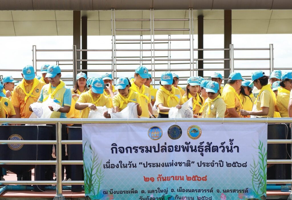 วันที่ 9 กันยายน 2568 นางเจนธิชา ชัยชาญ ผู้อำนวยการสำนักงานเศรษฐกิจการเกษตรที่ 12 นครสวรรค์ มอบหมายให้ เจ้าหน้าที่ส่วนวิจัยและประเมินผล ร่วมกิจกรรมจิตอาสาพัฒนาและปล่อยพันธุ์สัตว์น้ำ เนื่องในวันประมงแห่งชาติ ประจำปี 2568 ณ บริเวณอาคารศูนย์บริการนักท่องเที่ยวบึงบอระเพ็ด จังหวัดนครสวรรค์ โดยมี นางสาวชุติพร เสชัง ผู้ว่าราชการจังหวัดนครสวรรค์ เป็นประธาน พร้อมด้วยหัวหน้าส่วนราชการ จิตอาสา 904 และประชาชนจิตอาสา เข้าร่วมในกิจกรรมดังกล่าว